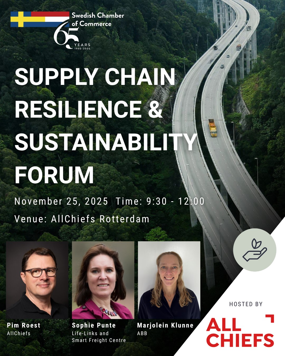 On November 25, 2025, the Swedish Chamber of Commerce invites you to the Supply Chain Resilience & Sustainability Forum, hosted in partnership with AllChiefs. Join an inspiring morning with forward-thinking business leaders, policy-makers, and logistics professionals to explore how collaboration, innovation, and knowledge-sharing can transform global supply chains for a more sustainable future. Through real-world […] ...